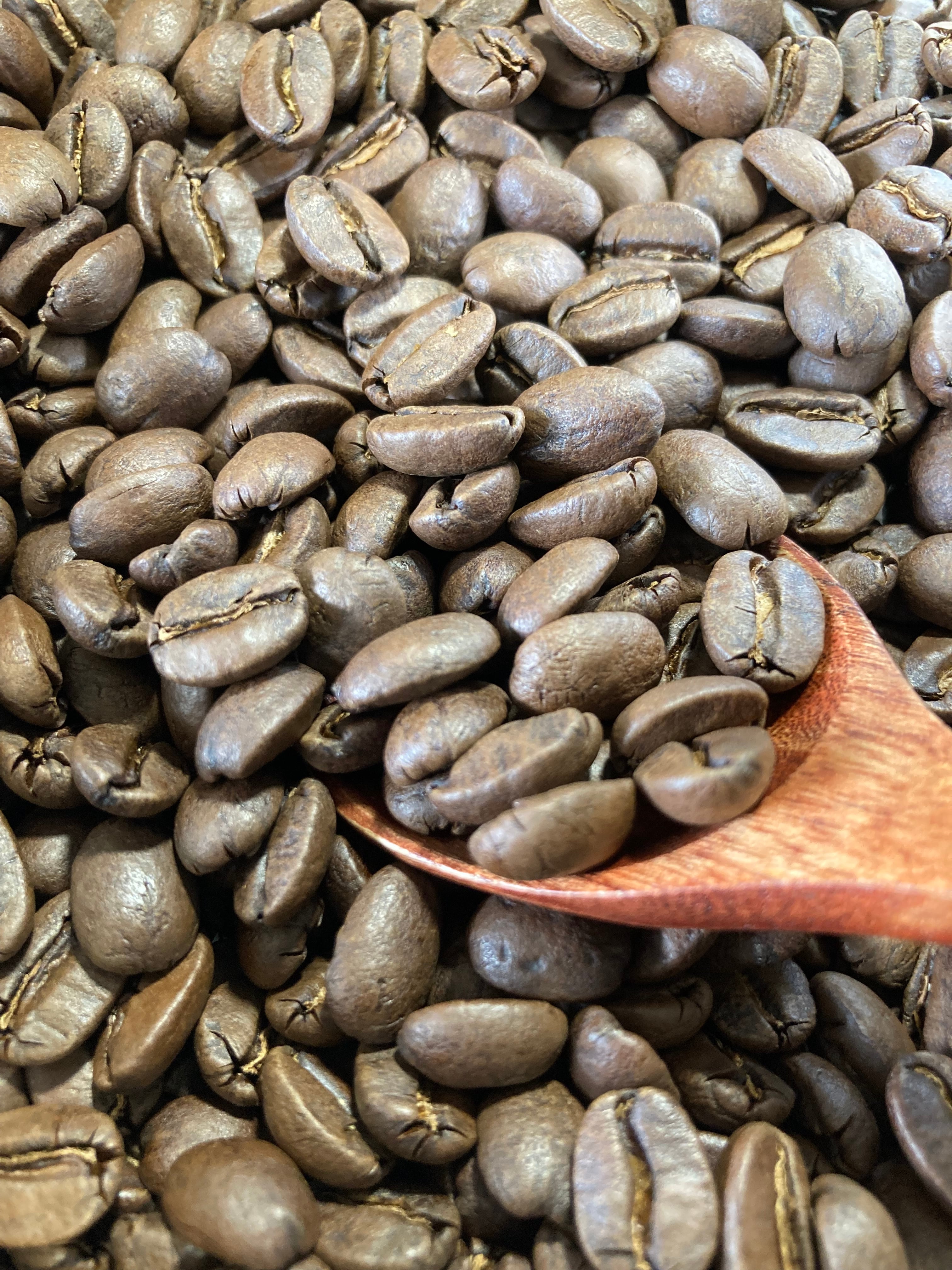インドネシアのマンデリンとブラジルの焙煎豆をブレンドした一品。 マンデリン特有のフレーバーとコク、ブラジル産完熟豆の甘味が特徴的です。 HOTでもおいしくお召し上がりいただけます。 香り:★★★★☆ 甘味:★★★★☆ 酸味:★☆☆☆☆ 苦味:★★★★☆ コク:★★★★★ 焙煎度:浅←1 2 3 4 5 ⑥ 7 8→深(フルシティロースト相当) 焙煎後1週間以内の豆を発送いたします。当店のコーヒー豆の飲み頃は焙煎後3〜4週間目以降です。それ以降は徐々に風味が落ちていきますので、その味わいの違いもお楽しみいただければ幸いです。 賞味期限:焙煎日からおよそ3か月です(豆の場合)。粉の場合は吸湿しやすいので、1か月を目安にお召し上がりください。